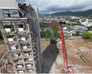 In November 2023, demolition work on the old children’s hospital began to make space for the new Digital Heart Center and the Informatics for Life Institute. The giant crane is now taking down the last building.